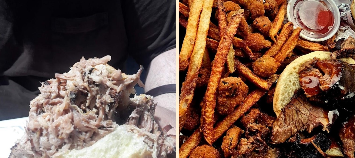 You must try the Beef Brisket and Pulled Pork. Both are slow-cooked to perfection with a smoky flavor. The homemade baked beans are also a hit. They offer a nice hint of spice that complements the meat well.